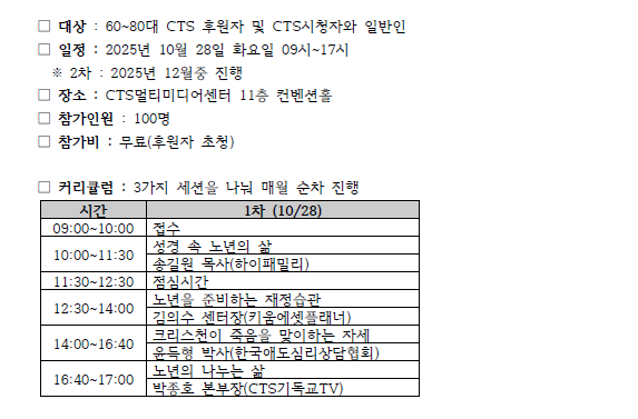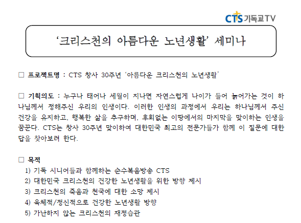 제목 : 크리스천의 아름다운 노년생활 세미나